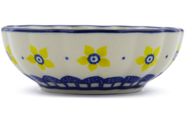 This Polish Pottery 5" Scalloped Fluted Bowl - Sunshine is handmade and handpainted by the Ceramika Artystyczna factory in Boleslawiec, Poland.