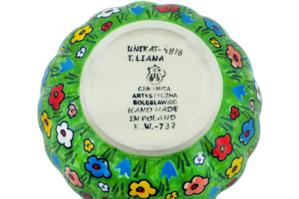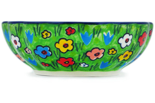 This Polish Pottery 5" Scalloped Fluted Bowl - Whimsical Garden is handmade and handpainted by the Ceramika Artystyczna factory in Boleslawiec, Poland.
