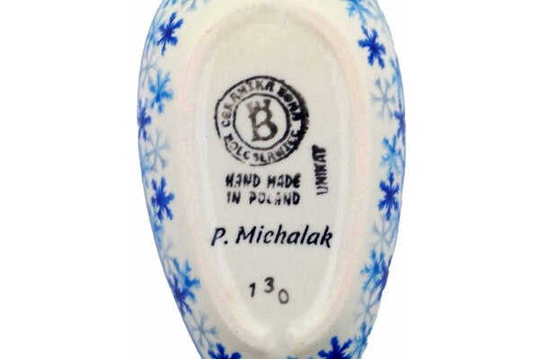 Ceramika Bona factory stamp | Polish Pottery HouseThis Polish Pottery 5" Spoon Rest - Delightful Snowfall is handmade and handpainted by the Ceramika Bona factory in Boleslawiec, Poland.