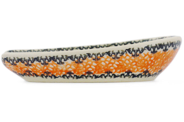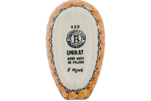 This Polish Pottery 5" Spoon Rest - Halloween Spooky Pumpkin is handmade and handpainted by the Ceramika Bona factory in Boleslawiec, Poland.