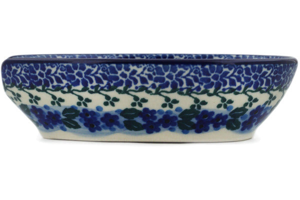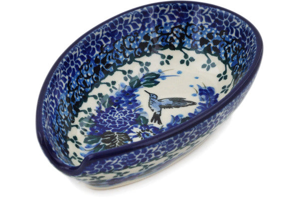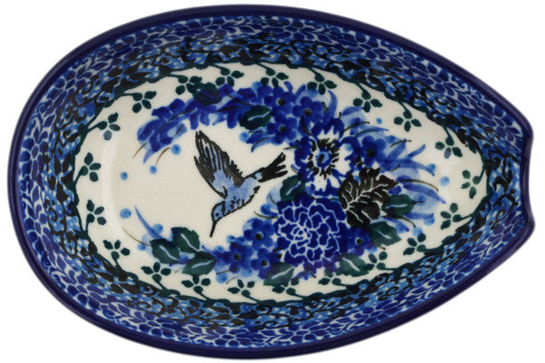 This Polish Pottery 5" Spoon Rest - Hummingbird Blue is handmade and handpainted by the Ceramika Artystyczna factory in Boleslawiec, Poland.