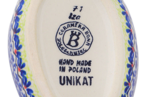 This Polish Pottery 5" Spoon Rest - Metamorphosis is handmade and handpainted by the Ceramika Bona factory in Boleslawiec, Poland.