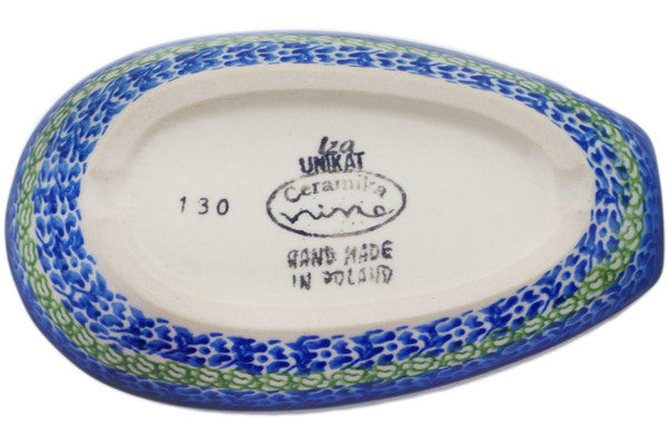 This Polish Pottery 5" Spoon Rest - Mushroom Garden is handmade and handpainted by the Ceramika Nina factory in Boleslawiec, Poland.