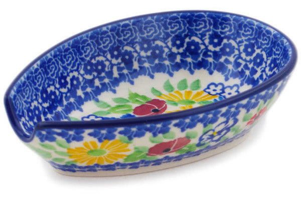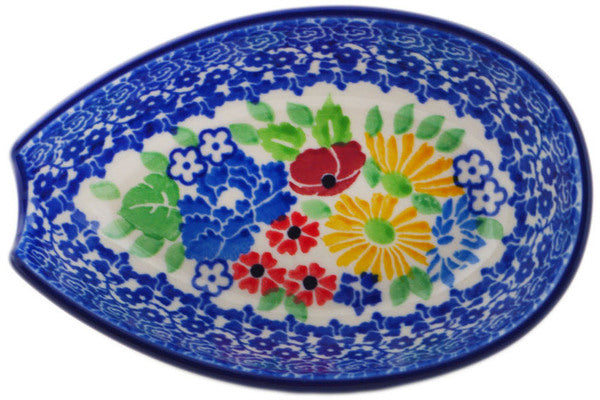 This Polish Pottery 5" Spoon Rest - Patio Views is handmade and handpainted by the Ceramika Artystyczna factory in Boleslawiec, Poland.