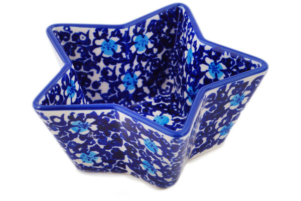 This Polish Pottery 5" Star Shaped Bowl - Flowers On The Lake is handmade and handpainted by the Manufaktura factory in Boleslawiec, Poland.