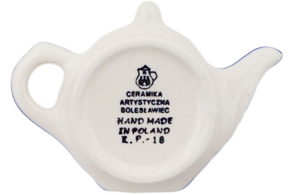 This Polish Pottery 5" Tea Bag or Lemon Plate - Blue Rosette Wreath is handmade and handpainted by the Ceramika Artystyczna factory in Boleslawiec, Poland.