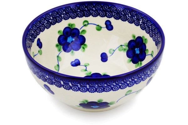 This Polish Pottery 6" Bowl - Blue Poppies is handmade and handpainted by the Ceramika Bona factory in Boleslawiec, Poland.