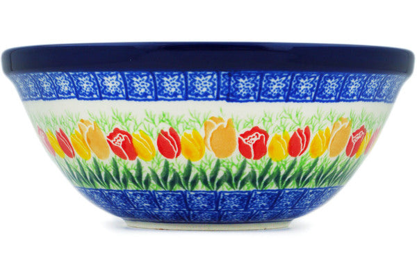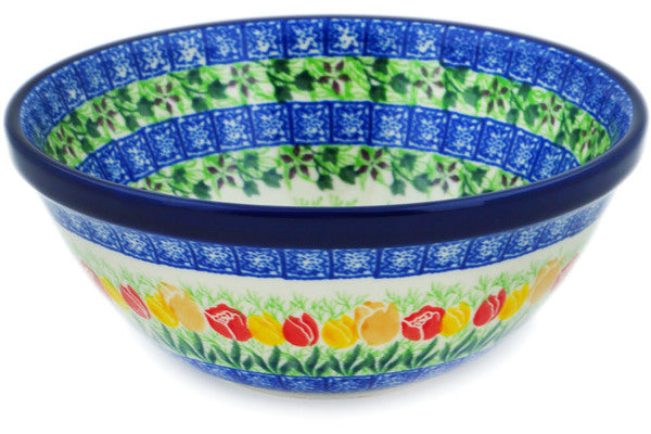 This Polish Pottery 6" Bowl - Crane In Tulip Splendor is handmade and handpainted by the Ceramika Artystyczna factory in Boleslawiec, Poland.