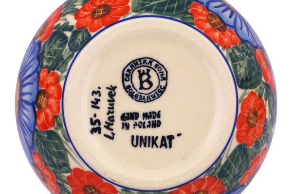This Polish Pottery 6" Bowl - Flowers In Bloom is handmade and handpainted by the Ceramika Bona factory in Boleslawiec, Poland.