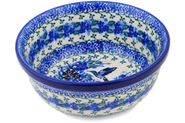 This Polish Pottery 6" Bowl - Hummingbird Blue is handmade and handpainted by the Ceramika Artystyczna factory in Boleslawiec, Poland.
