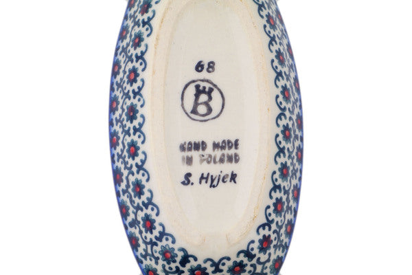 This Polish Pottery 6" Condiment Dish - Field Of Black Daisies is handmade and handpainted by the Ceramika Bona factory in Boleslawiec, Poland.