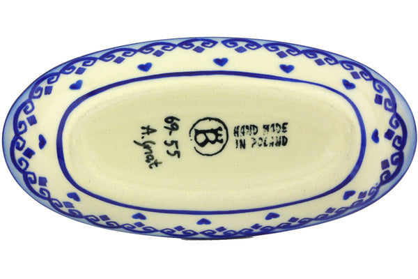 This Polish Pottery 6" Condiment Dish - Hearts And Flowers is handmade and handpainted by the Ceramika Bona factory in Boleslawiec, Poland.
