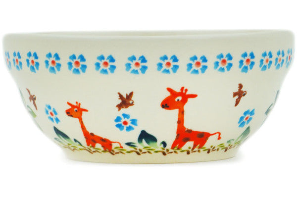 This Polish Pottery 6" Bowl - Giraffe Adventure is handmade and handpainted by the Zaklady Ceramiczne factory in Boleslawiec, Poland.