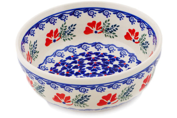 This Polish Pottery 6" Bowl - Rain Of Field Poppies is handmade and handpainted by the Zaklady Ceramiczne factory in Boleslawiec, Poland.