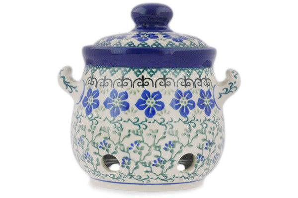 This Polish Pottery 6" Garlic and Onion Jar - Blue Dogwood is handmade and handpainted by the Ceramika Artystyczna factory in Boleslawiec, Poland.