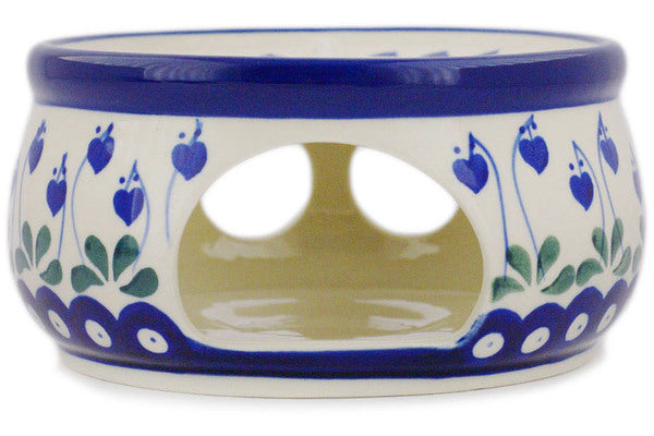 This Polish Pottery 6" Heater with Candle Holder - Bleeding Heart Peacock is handmade and handpainted by the Ceramika Artystyczna factory in Boleslawiec, Poland.