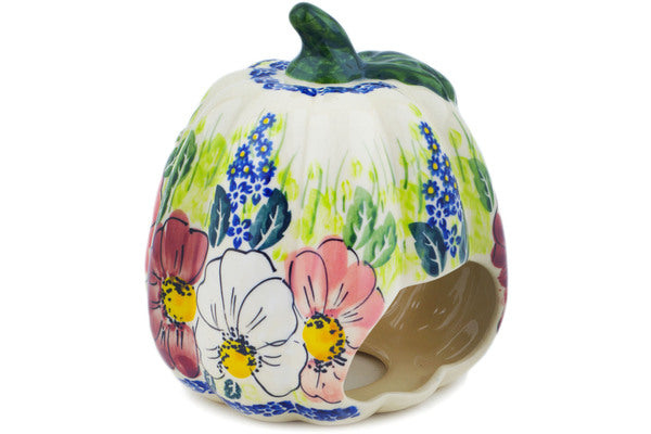 This Polish Pottery 6" Jack O Lantern Candle Holder - Maroon Blossoms is handmade and handpainted by the Ceramika Nina factory in Boleslawiec, Poland.