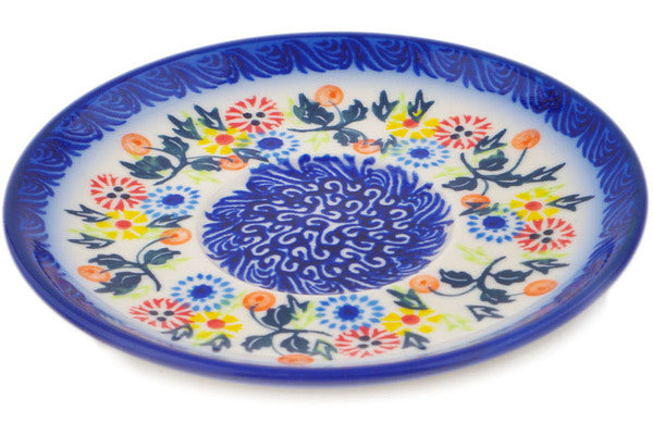 This Polish Pottery 6" Saucer - Pastel Spring Wreath is handmade and handpainted by the Ceramika Bona factory in Boleslawiec, Poland.