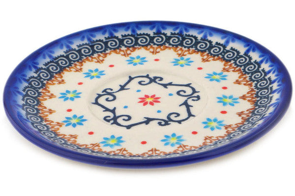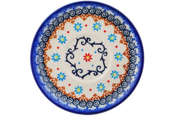 This Polish Pottery 6" Saucer - Sunflower Dance is handmade and handpainted by the Ceramika Bona factory in Boleslawiec, Poland.