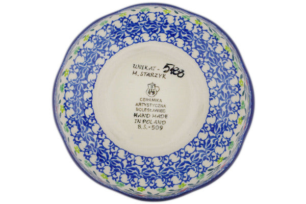 This Polish Pottery 6" Scalloped Bowl - Robin & Wren is handmade and handpainted by the Ceramika Artystyczna factory in Boleslawiec, Poland.