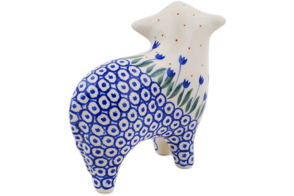 This Polish Pottery 6" Sheep Figurine - Water Tulip is handmade and handpainted by the Ceramika Artystyczna factory in Boleslawiec, Poland.