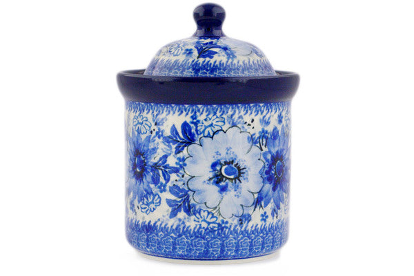 This Polish Pottery 6" Jar with Lid - Blue Wildflower Patch is handmade and handpainted by the Ceramika Artystyczna factory in Boleslawiec, Poland.