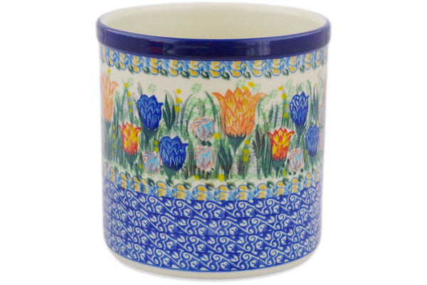 This Polish Pottery 6" Utensil Jar - Tulip Garden is handmade and handpainted by the Ceramika Artystyczna factory in Boleslawiec, Poland.