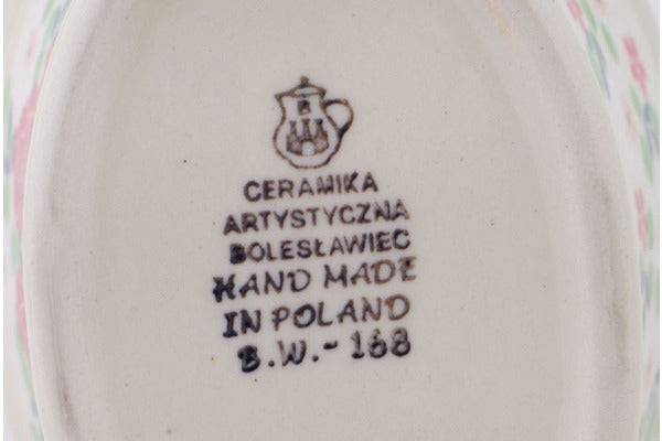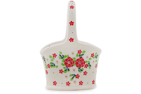 This Polish Pottery 7" Basket with Handle - Rosy Cheeks is handmade and handpainted by the Ceramika Artystyczna factory in Boleslawiec, Poland.