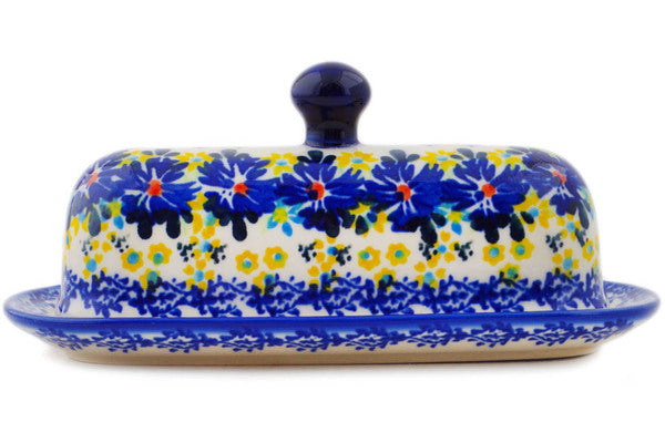 This Polish Pottery 7" Butter Dish - Cornflower Meadow is handmade and handpainted by the Ceramika Bona factory in Boleslawiec, Poland.