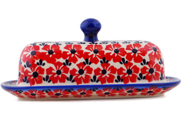 This Polish Pottery 7" Butter Dish - Hawaiian Bliss is handmade and handpainted by the Ceramika Bona factory in Boleslawiec, Poland.