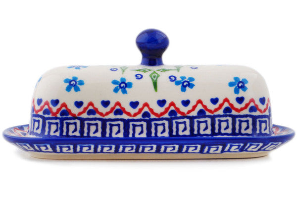 This Polish Pottery 7" Butter Dish - Little Blue Flowers is handmade and handpainted by the Ceramika Bona factory in Boleslawiec, Poland.