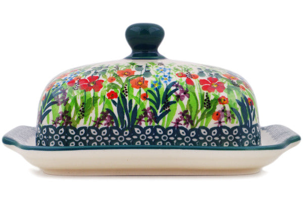 This Polish Pottery 7" Butter Dish - Red Garden is handmade and handpainted by the Ceramika Artystyczna factory in Boleslawiec, Poland.