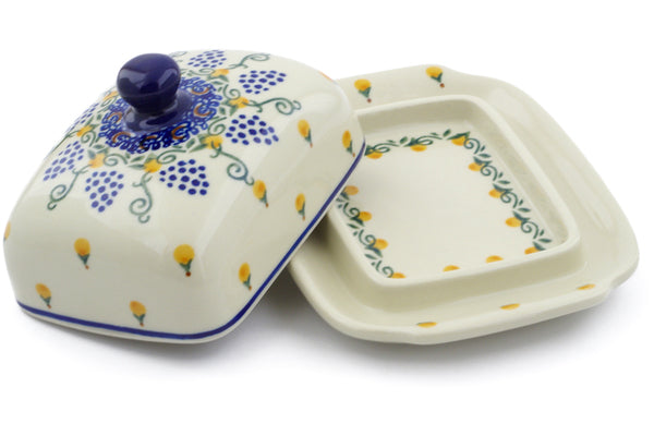 This Polish Pottery 7" Butter Dish - Summer Grapes is handmade and handpainted by the Ceramika Artystyczna factory in Boleslawiec, Poland.
