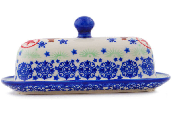 This Polish Pottery 7" Butter Dish - Texas State is handmade and handpainted by the Ceramika Bona factory in Boleslawiec, Poland.
