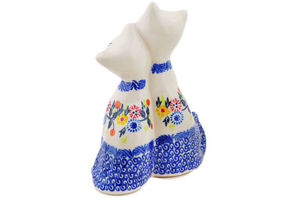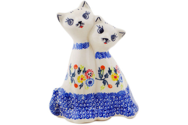 This Polish Pottery 7" Cat Figurine - Pastel Spring Wreath is handmade and handpainted by the Ceramika Bona factory in Boleslawiec, Poland.