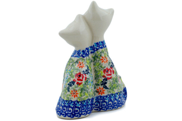 This Polish Pottery 7" Cat Figurine - Rose Garden is handmade and handpainted by the Ceramika Bona factory in Boleslawiec, Poland.