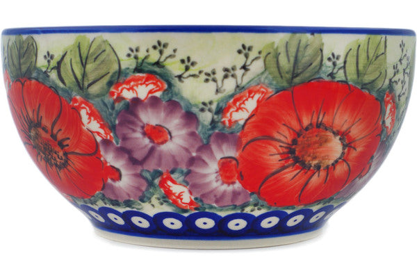 This Polish Pottery 7" Bowl - Blue Eyes Bouquet is handmade and handpainted by the Kaleta Ceramics factory in Boleslawiec, Poland.