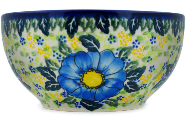 This Polish Pottery 7" Bowl - Blue Happy Fields is handmade and handpainted by the Ceramika Nina factory in Boleslawiec, Poland.