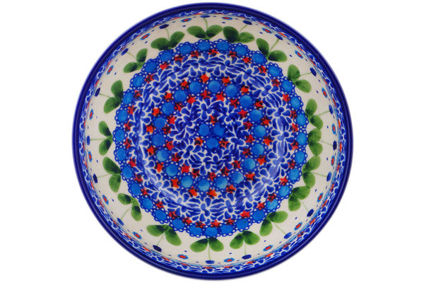 This Polish Pottery 7" Bowl - Blue Tulip Garden is handmade and handpainted by the Ceramika Bona factory in Boleslawiec, Poland.