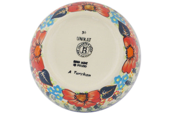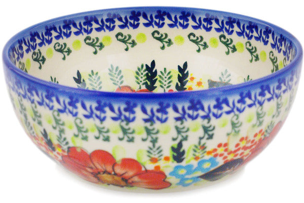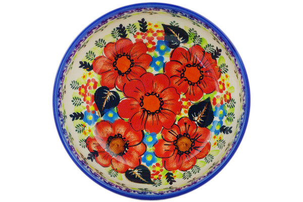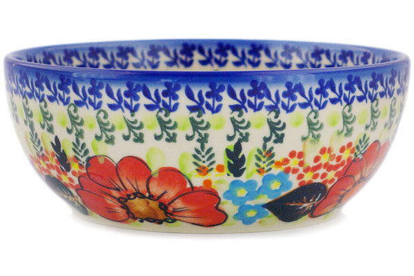 This Polish Pottery 7" Bowl - Bold Red Poppies is handmade and handpainted by the Ceramika Bona factory in Boleslawiec, Poland.