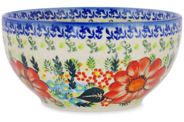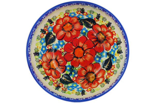 This Polish Pottery 7" Bowl - Bold Red Poppies is handmade and handpainted by the Ceramika Bona factory in Boleslawiec, Poland.