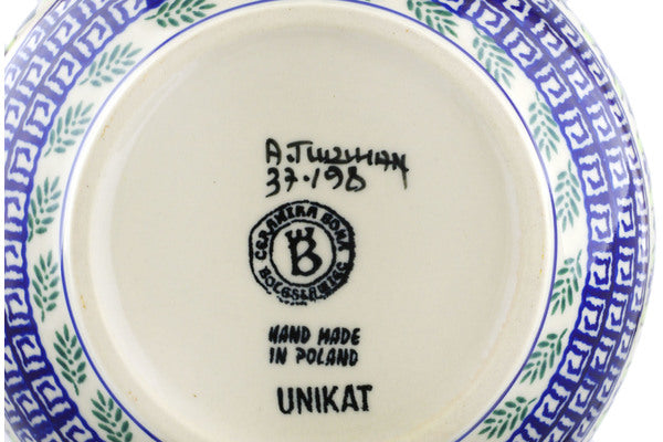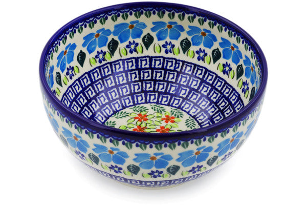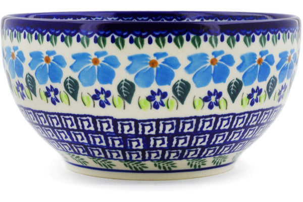 This Polish Pottery 7" Bowl - Pansy Morning is handmade and handpainted by the Ceramika Bona factory in Boleslawiec, Poland.