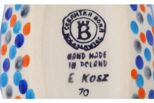 This Polish Pottery 7" Condiment Dish - Polka Dot Frenzy is handmade and handpainted by the Ceramika Bona factory in Boleslawiec, Poland.