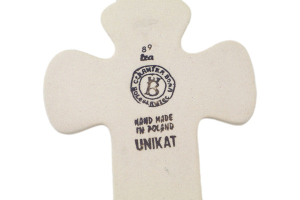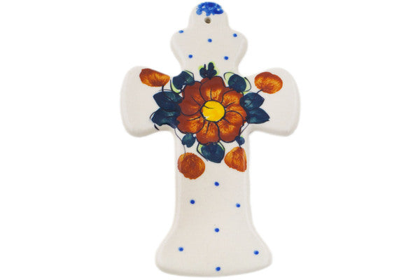 This Polish Pottery 7" Cross - Autumn Pansies is handmade and handpainted by the Ceramika Bona factory in Boleslawiec, Poland.