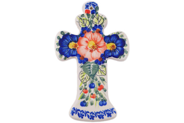 This Polish Pottery 7" Cross - Poppy Trio is handmade and handpainted by the Ceramika Bona factory in Boleslawiec, Poland.