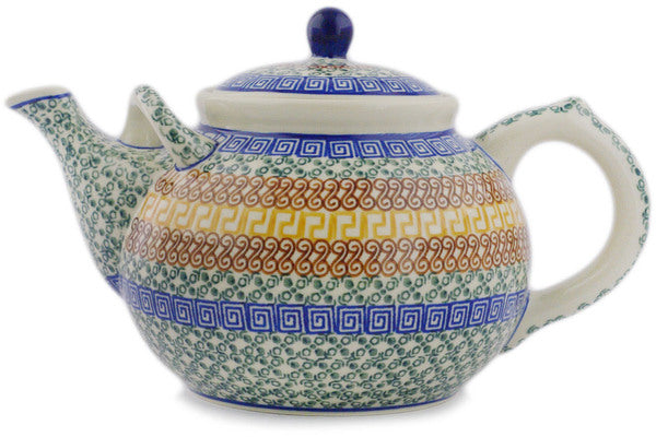 This Polish Pottery 61 oz Tea or Coffee Pot - Grecian Sea is handmade and handpainted by the Ceramika Artystyczna factory in Boleslawiec, Poland.