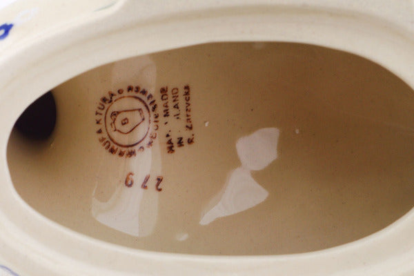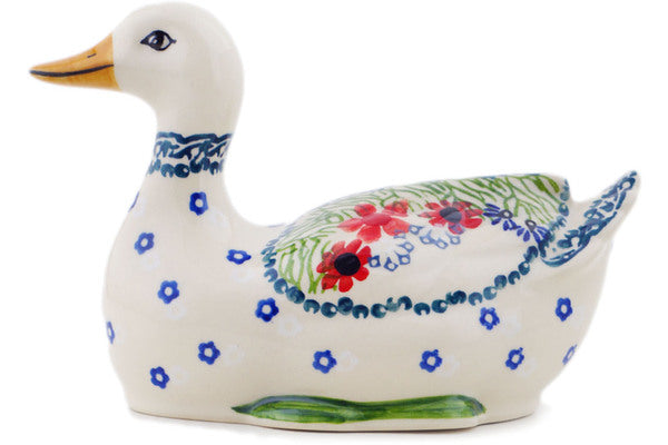 Manufaktura factory stamp | Polish Pottery HouseThis Polish Pottery 7" Duck Figurine - Red Blossom is handmade and handpainted by the Manufaktura factory in Boleslawiec, Poland.