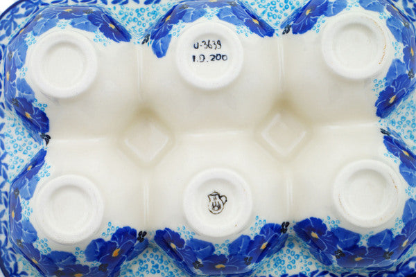 This Polish Pottery 7" Egg Crate - Deep Winter is handmade and handpainted by the Ceramika Artystyczna factory in Boleslawiec, Poland.