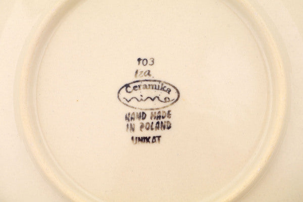 This Polish Pottery 8" Plate - Mushroom Garden is handmade and handpainted by the Ceramika Nina factory in Boleslawiec, Poland.