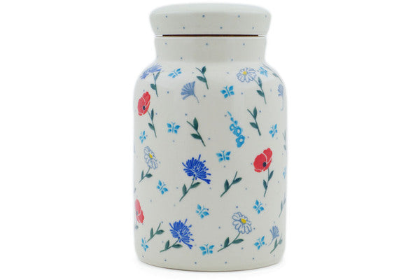 This Polish Pottery 7" Jar with Lid - Springtime Serenade is handmade and handpainted by the Ceramika Artystyczna factory in Boleslawiec, Poland.